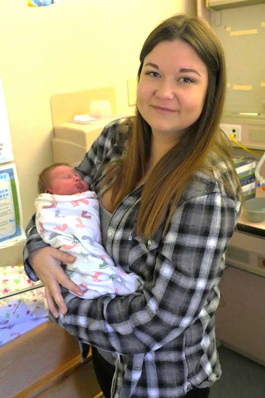 Photo: Brandais Spawn holds her daughter, Riley Grace Spawn, the first Poway baby born of 2019.